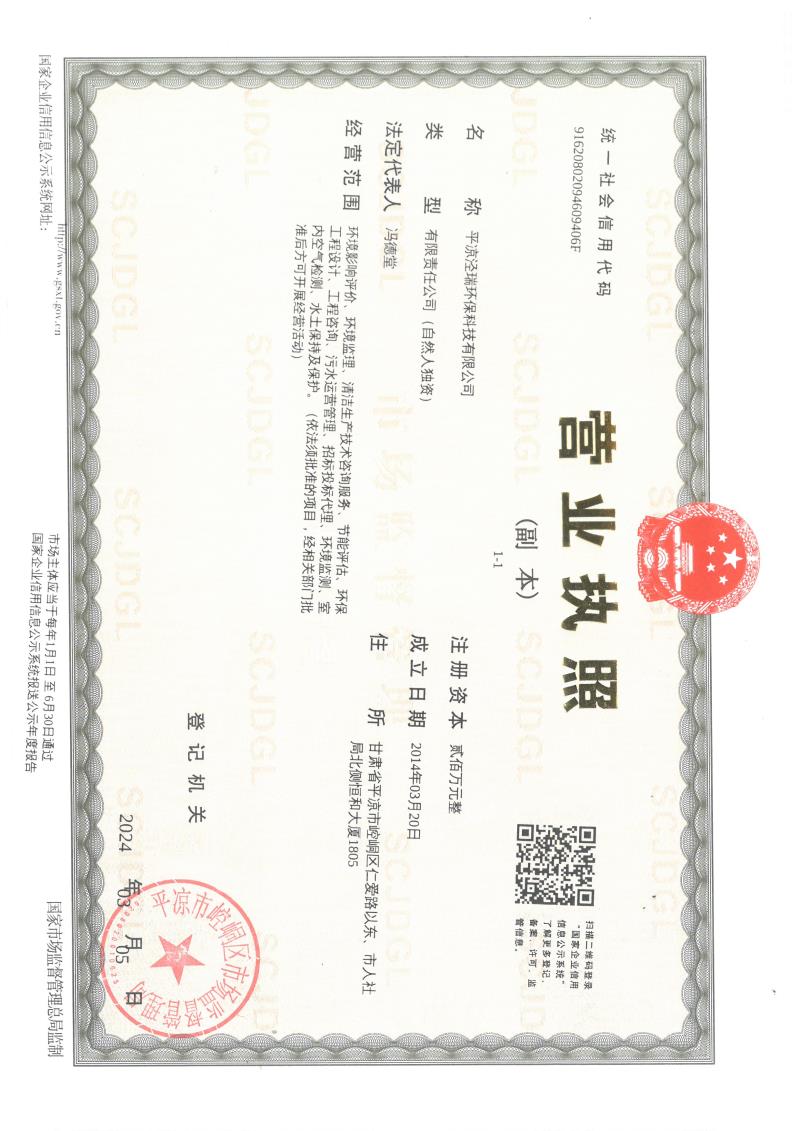 平?jīng)鰶苋瓠h(huán)保科技有限公司營(yíng)業(yè)執(zhí)照