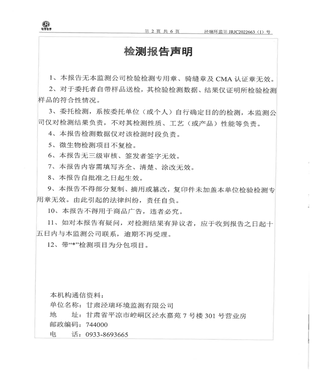 華亭市樂華冶化有限責任公司自行檢測報告